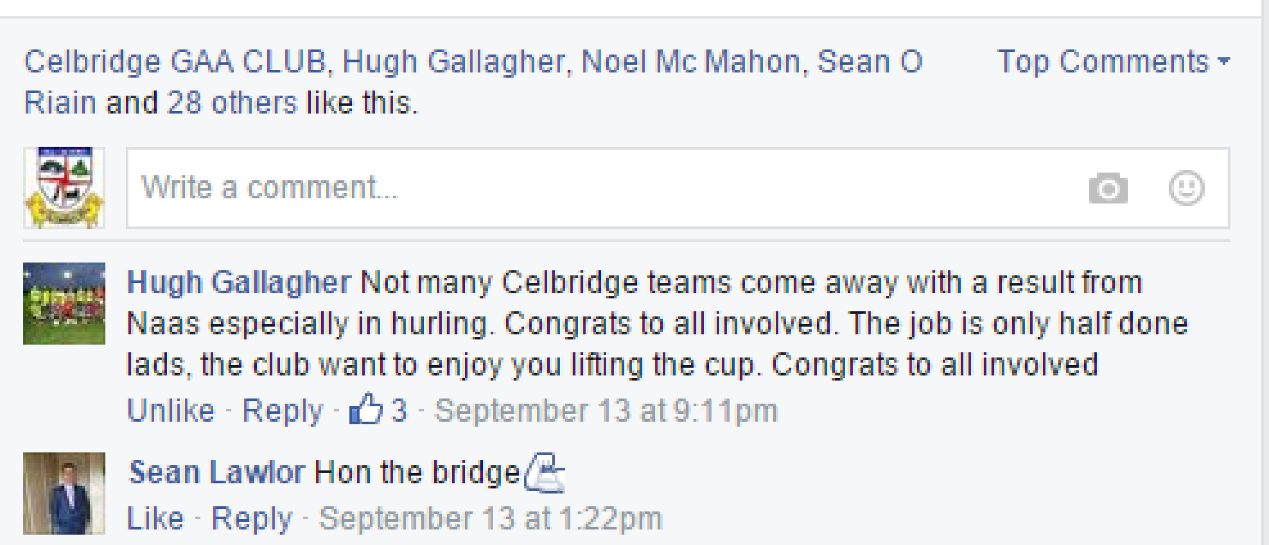 Minor hurlers beat Naas Written by PRO on 19 September 2015. Posted in H-Minor. Celbridge GAA CLUB Minor hurlers beat Naas in Naas to reach minor hurling championship final against same opposition. Score 1-15 to 2-10. Great result for Brendan McGrath and his team Prev Next